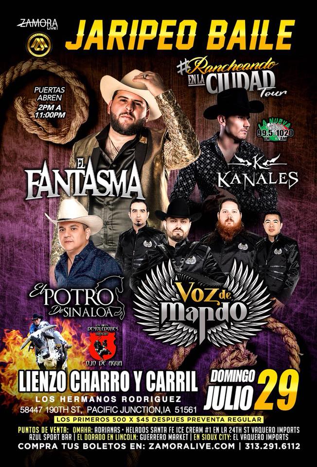 El Fantasma, Kanales, Voz de Mando and El Potro de Sinaloa perform at the Pacifico Juntion in Iowa on July 29th, 2018.