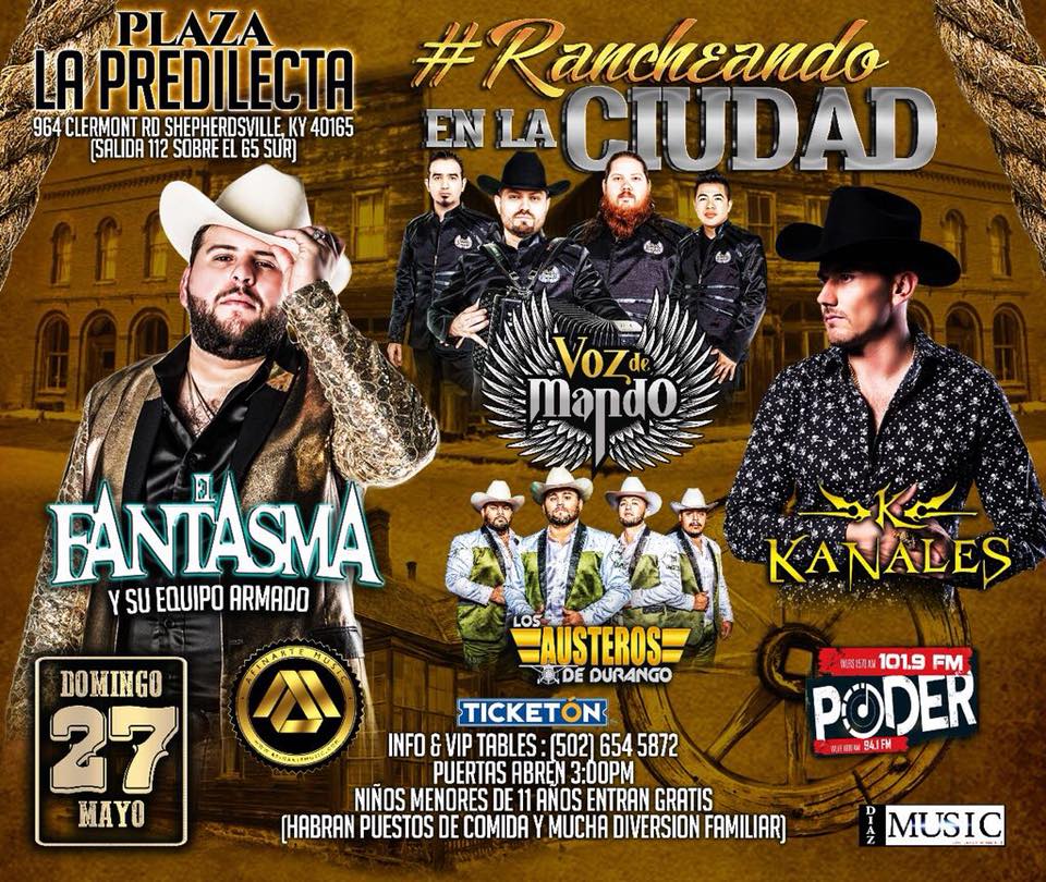 El Fantasma, Voz de Mando, Kanales, and Los Austeros De Durango perform on the Rancheando en la Ciudad Tour on May 27th 2018 in Shepherdsville, Kentucky.
